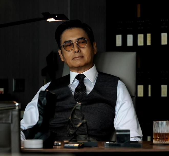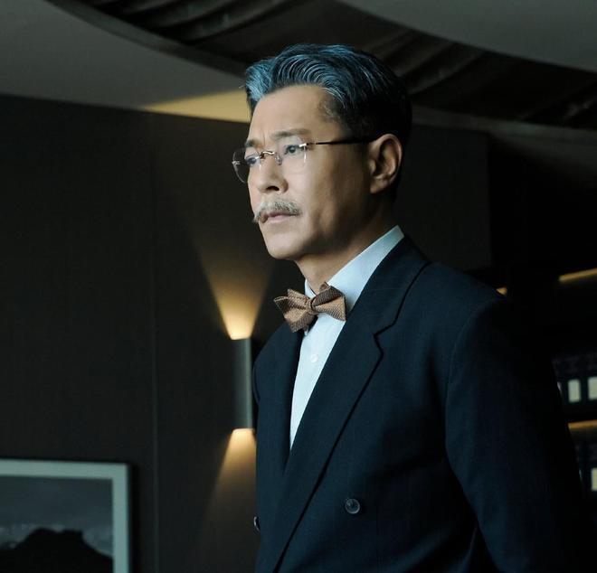 因为妆造的原因,让古天乐比实际年龄看起来老了不少,但白发配近视眼镜,却自带一股儒雅霸气的特质,显得格外神秘。