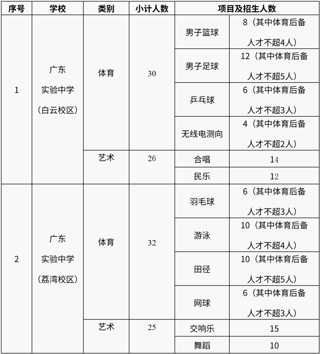 广州市以外广东省考生登录广东实验中学网站(www.gdsyzx.edu.cn)“招生招聘”栏目中体育艺术测试报名系统进行预报名。